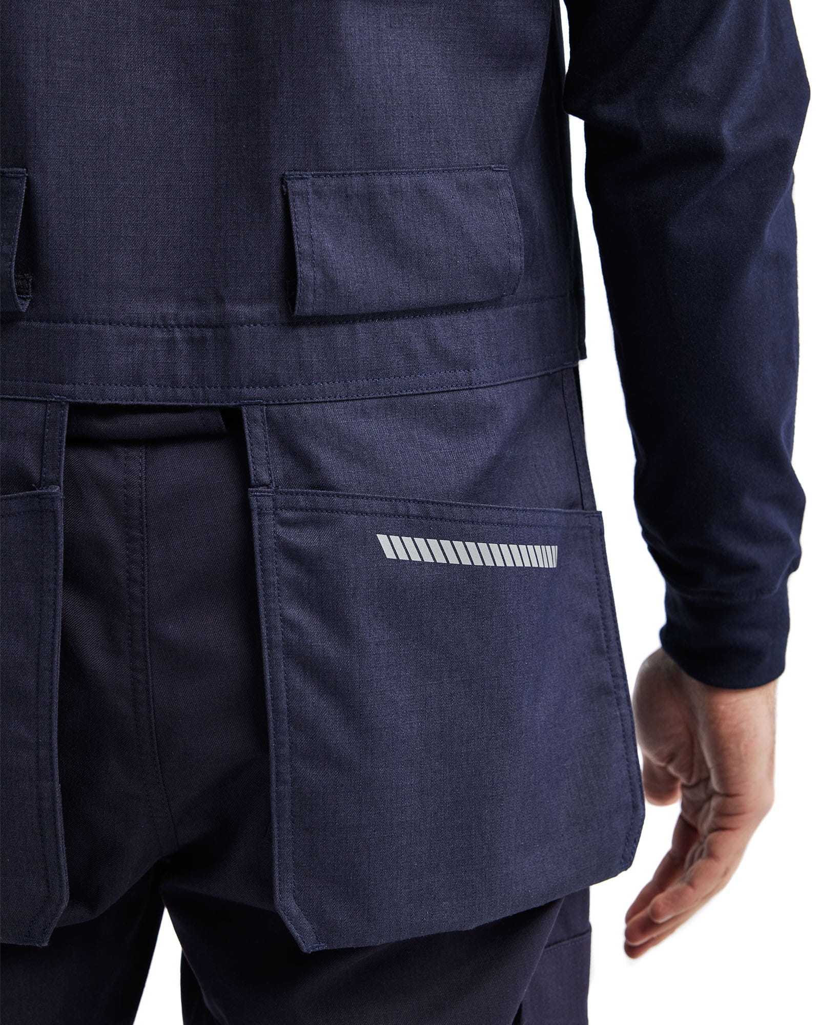 Miękka i elastyczna kamizelka o wysokiej wytrzymałości, zaprojektowana dla instalatorów i elektryków przenoszących dużo sprzętu. Wyposażona w wielofunkcyjne kieszenie i szlufki na pas umożliwiające rozłożenie obciążenia. Nie zawiera elementów metalowych - posiada plastikowe guziki i zamek. Zgrzewane elementy odblaskowe zwiększają widoczność podczas pracy.