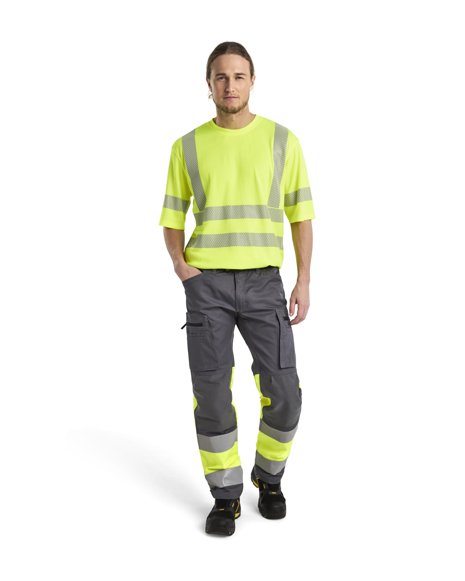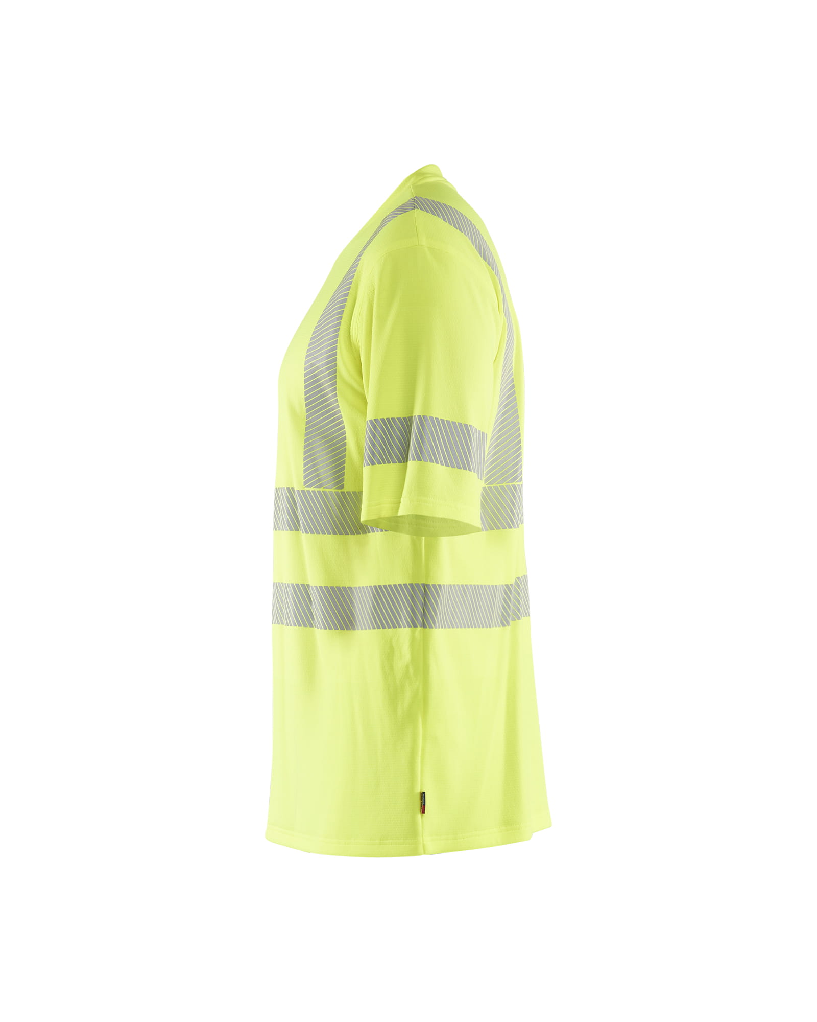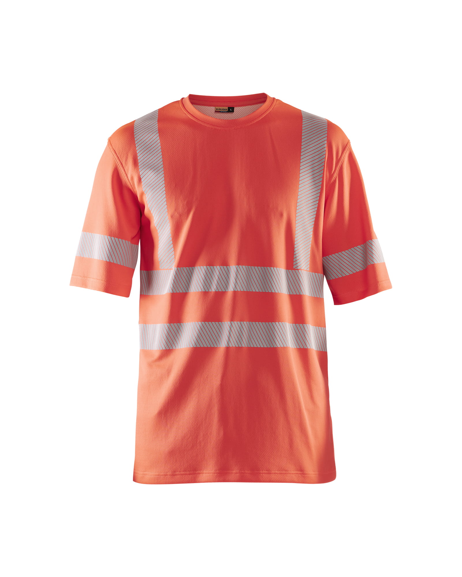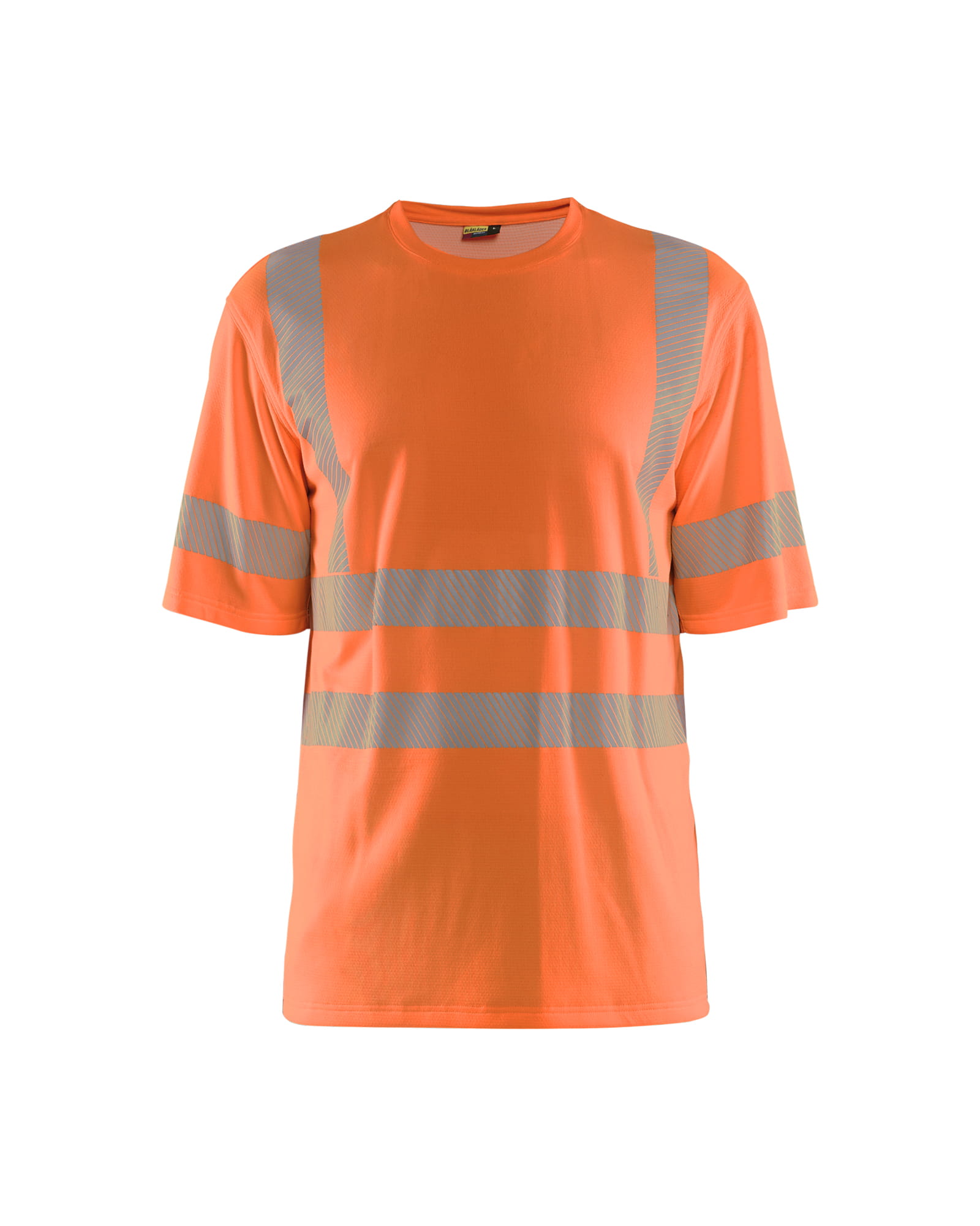 Koszulka odblaskowa wyposażona w segmentową taśmę odblaskową zwiększającą widoczność. Materiał zapewnia doskonałą chłonność - odprowadza pot na zewnątrz, gdzie szybko wysycha, tworząc komfortowy mikroklimat. Nie nadaje się do prania przemysłowego. Prać w 60°C. Certyfikowana normą EN ISO 20471: XS-M (klasa 2), L+ (klasa 3).