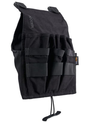 1 kieszeń wisząca. Do łatwego, indywidualnego mocowania za pomocą Click Pocket System. Wysoka wytrzymałość i wiele kieszeni. 1 duża, pojemna kieszeń. 9 mniejszych kieszeni na narzędzia. 3 paski i uchwyt na taśmę izolacyjną. Zaczep do wieszania po odpięciu od ubioru. Wymiary 20 x 30 cm.