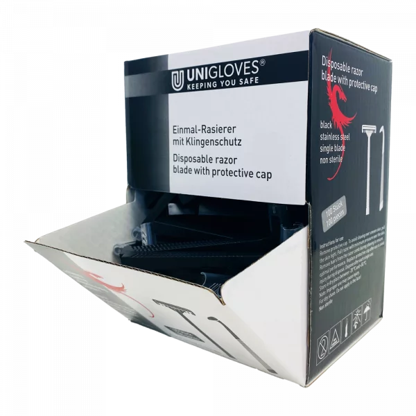 Jednorazowa maszynka do golenia Unigloves to idealne rozwiązanie do precyzyjnego usuwania włosów na mokro i sucho.